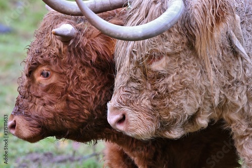 © yvonne, Fototapeta premium portrait of two scottish higlander cows