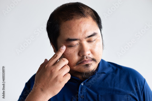 Fototapeta premium Portrait of visual-impaired asian man with eye irritation or eye inflammation