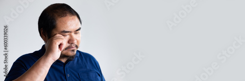Fototapeta premium Portrait of visual-impaired asian man with eye irritation or eye inflammation