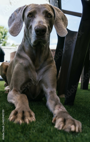 Fototapeta premium portrait of weimaraner in the garden