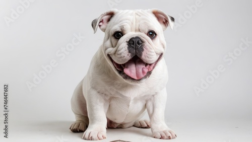 © QuoDesign, Fototapeta premium Portrait of White english bulldog on grey background