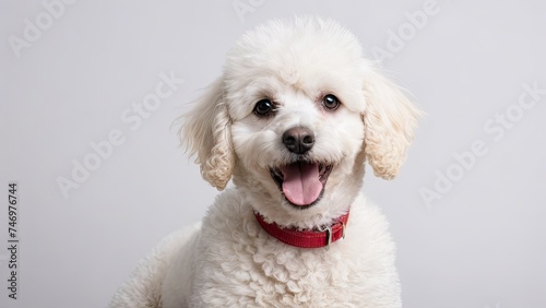 Obraz premium Portrait of White poodle dog on grey background