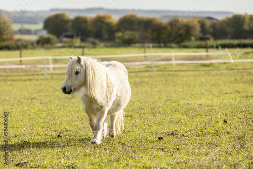 © © Raymond Orton, Obraz premium Portrait of white shetland pony with beautiful long mane