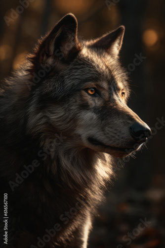 Fototapeta premium Portrait of Wolf Dramatic and Cinematic Lighting Photography, Generative AI