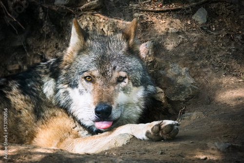 © Jim Barris, Fototapeta premium portrait of wolf in bavarian animal run