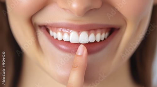 Obraz premium Portrait of Woman Pointing at Her Bright Smile