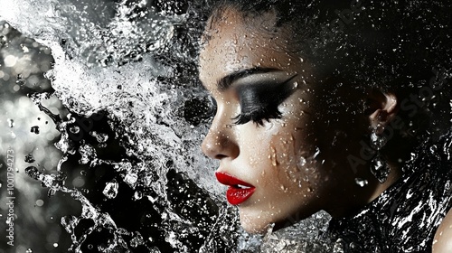 Obraz premium Portrait of woman with dramatic water splash effect