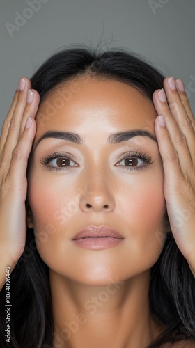 © andrasgyalog, Obraz premium Portrait of Woman with Hands Framing Face