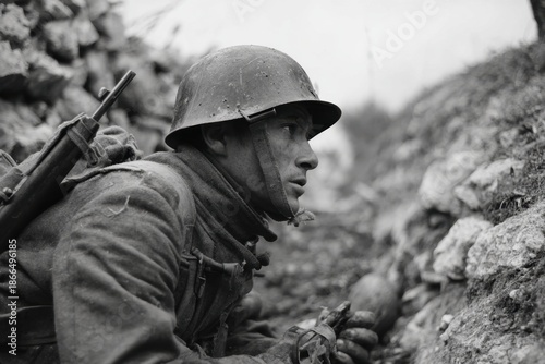© Bargais, Fototapeta premium Portrait of World War II soldier.
