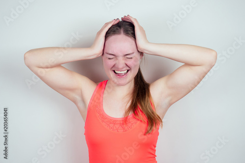 Fototapeta premium Portrait of young and beautiful teenager girl thoughtful. the woman thought...
