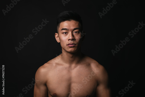 Fototapeta premium Portrait of young asian boy with fitness body.