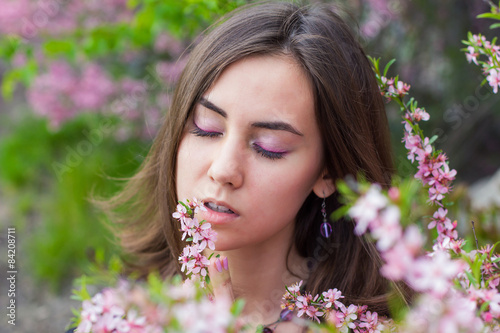 Fototapeta premium portrait of young beautiful girl in flowers
