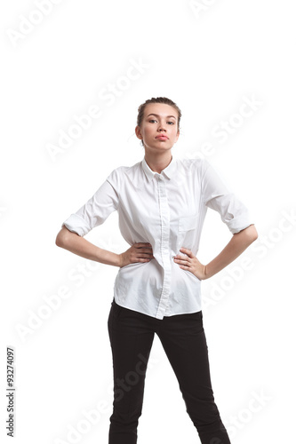 Fototapeta premium Portrait of young beautiful woman isolated