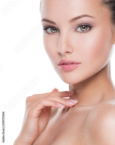 © Valua Vitaly, Fototapeta premium portrait of young beautiful woman with hands at face