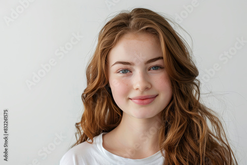 Fototapeta premium Portrait of young cheerful girl with natural beauty and freckles