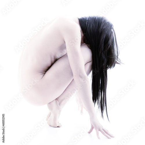 © Khorzhevska, Naklejka premium Portrait of young fitness woman with perfect body, naked sexy gi