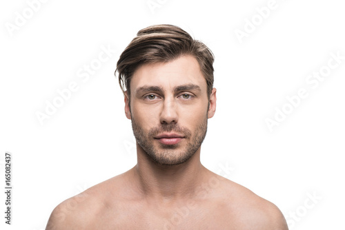 Obraz premium portrait of young handsome man looking at camera, isolated on white