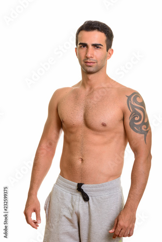 Fototapeta premium Portrait of young handsome Persian man shirtless