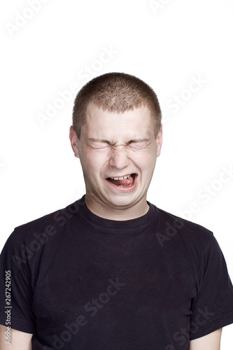 © artmim, Fototapeta premium Portrait of young man. Facial expression. grimace with tongue