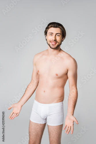 © LIGHTFIELD STUDIOS, Fototapeta premium portrait of young man in white underwear looking at camera isolated on grey