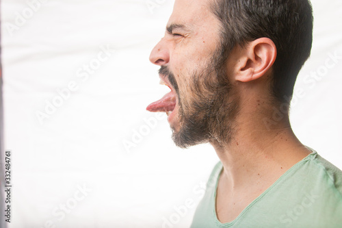 © Alex Sobrino, Obraz premium portrait of young man with his tongue out