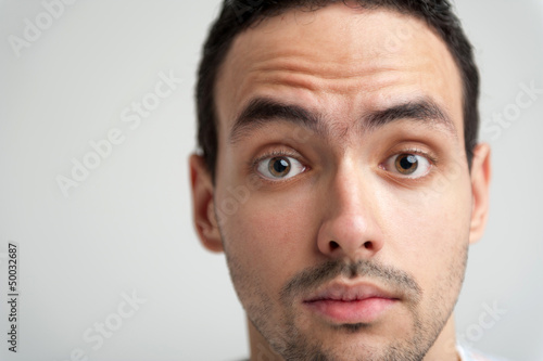 © maxsaf, Obraz premium Portrait of young man with widely open eyes