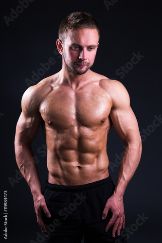 © Di Studio, Fototapeta premium portrait of young muscular man standing over grey