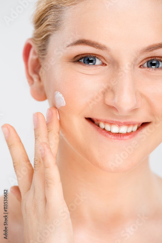 © Cookie Studio, Fototapeta premium Portrait of young pretty girl over white background.