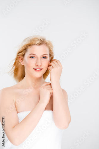 © Cookie Studio, Fototapeta premium Portrait of young pretty girl over white background.