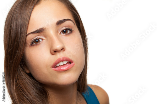 © asierromero, Fototapeta premium portrait of young pretty woman face on white background
