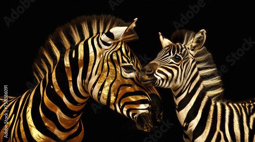 © Clemency, Naklejka premium portrait of zebra with gold texture on black background