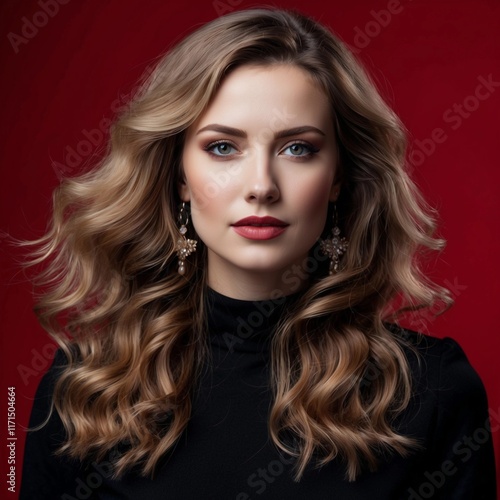 Fototapeta premium Portrait Photo of Pretty Beautiful Woman on Colorful Background, Face...