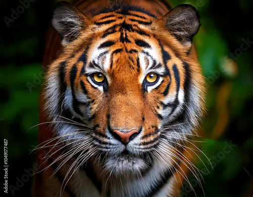 © MediaPro, Fototapeta premium Portrait rapproché d'un tigre dans la jungle, ses yeux perçants fixant l'objectif