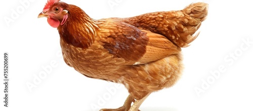 © yusufadi, Fototapeta premium Portrait red or brown chicken isolated on white background. AI generated image