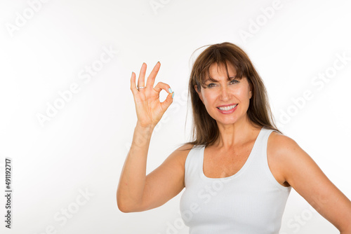 © luisrojasstock, Fototapeta premium portrait senior woman with okey gesture on white background