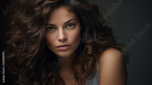 © Studio Zenith, Fototapeta premium portrait studio low-key d'une femme brune sur fond sombre