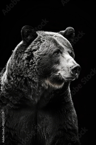 © Mappingz, Fototapeta premium portrait studio photograph of grizzly bear black and white