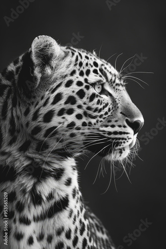 © Mappingz, Obraz premium portrait studio photograph of leopard black and white