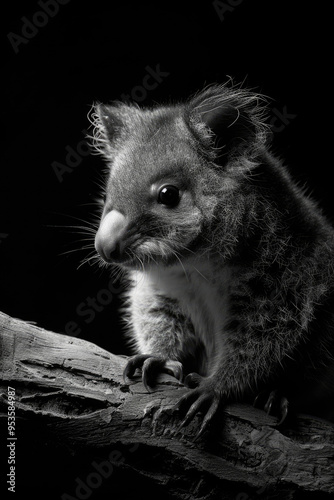 © Mappingz, Obraz premium portrait studio photograph of marsupial black and white
