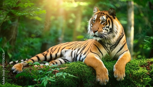 © pornpun, Fototapeta premium portrait tiger in nature green forest