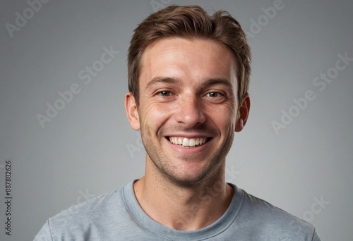 © jarntag, Fototapeta premium Portrait view of a regular happy smiling Australia man, ultra realistic, candid, social media, avatar image, plain solid background