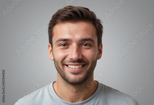 © jarntag, Fototapeta premium Portrait view of a regular happy smiling Croatia man, ultra realistic, candid, social media, avatar image, plain solid background