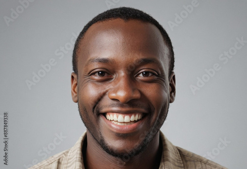 Fototapeta premium Portrait view of a regular happy smiling Kenya man, ultra realistic, candid, social media, avatar image, plain solid background