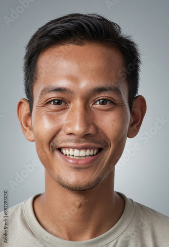© jarntag, Fototapeta premium Portrait view of a regular happy smiling Myanmar man, ultra realistic, candid, social media, avatar image, plain solid background