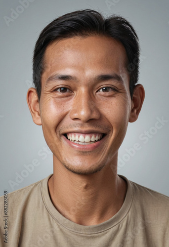 © jarntag, Fototapeta premium Portrait view of a regular happy smiling Myanmar man, ultra realistic, candid, social media, avatar image, plain solid background
