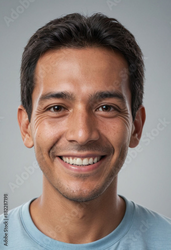 © jarntag, Fototapeta premium Portrait view of a regular happy smiling Peru man, ultra realistic, candid, social media, avatar image, plain solid background