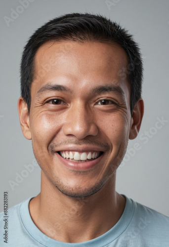 © jarntag, Fototapeta premium Portrait view of a regular happy smiling Philippines man, ultra realistic, candid, social media, avatar image, plain solid background