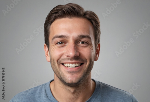 © jarntag, Fototapeta premium Portrait view of a regular happy smiling Switzerland man, ultra realistic, candid, social media, avatar image, plain solid background