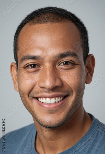 © jarntag, Fototapeta premium Portrait view of a regular happy smiling Tuvalu man, ultra realistic, candid, social media, avatar image, plain solid background