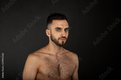 © Vasya, Fototapeta premium Portrait with copy space of attractive, virile, harsh, sporty man